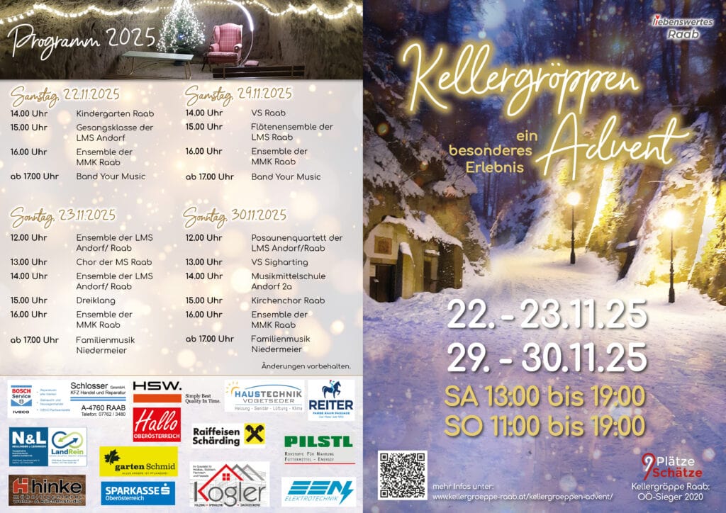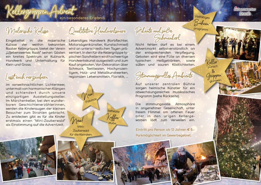 Eingebettet in die malerische Kulisse der weithin bekannten Kellergasse, bietet der Verein „L(i)ebenswertes Raab“ beim „Kellergröppen Advent“ seinen Gästen ein breites Spektrum an Kulinarik, Handwerk und Unterhaltung für Groß und Klein.